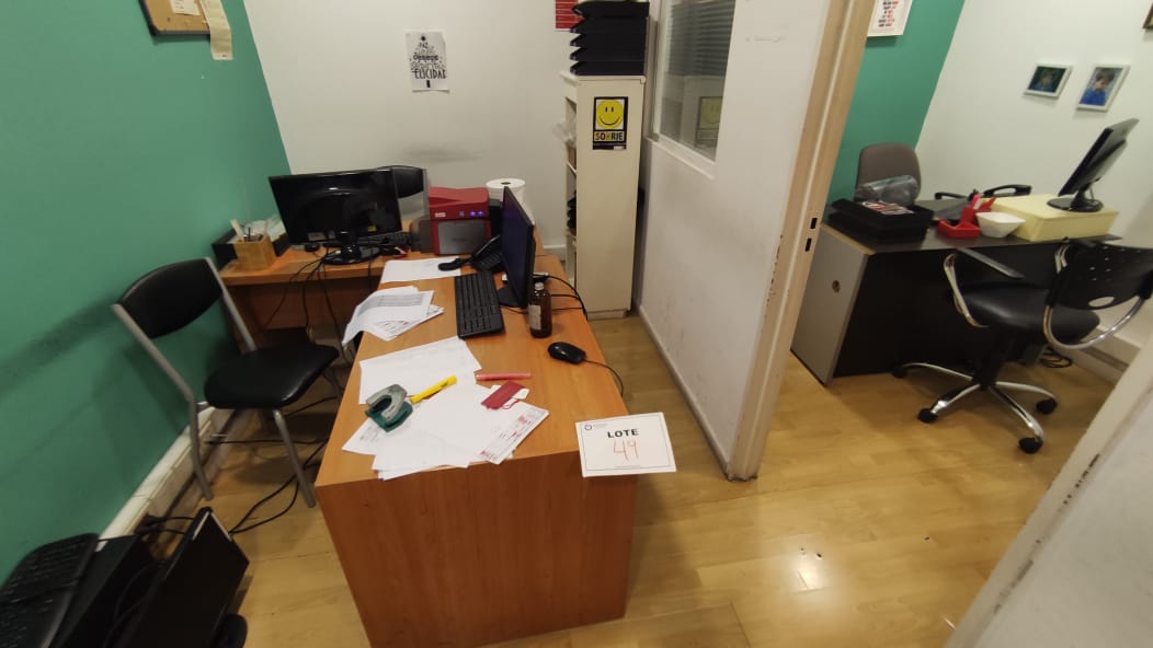Impresora de tarjetas – módulos lockers – ventiladores de pared – mostrador con forma de “L” – escritorio para PC – aparador con estantes – fichero de madera – armarios – escritorios de oficina – PC de escritorio – sillas – aire acondicionado split YORK |