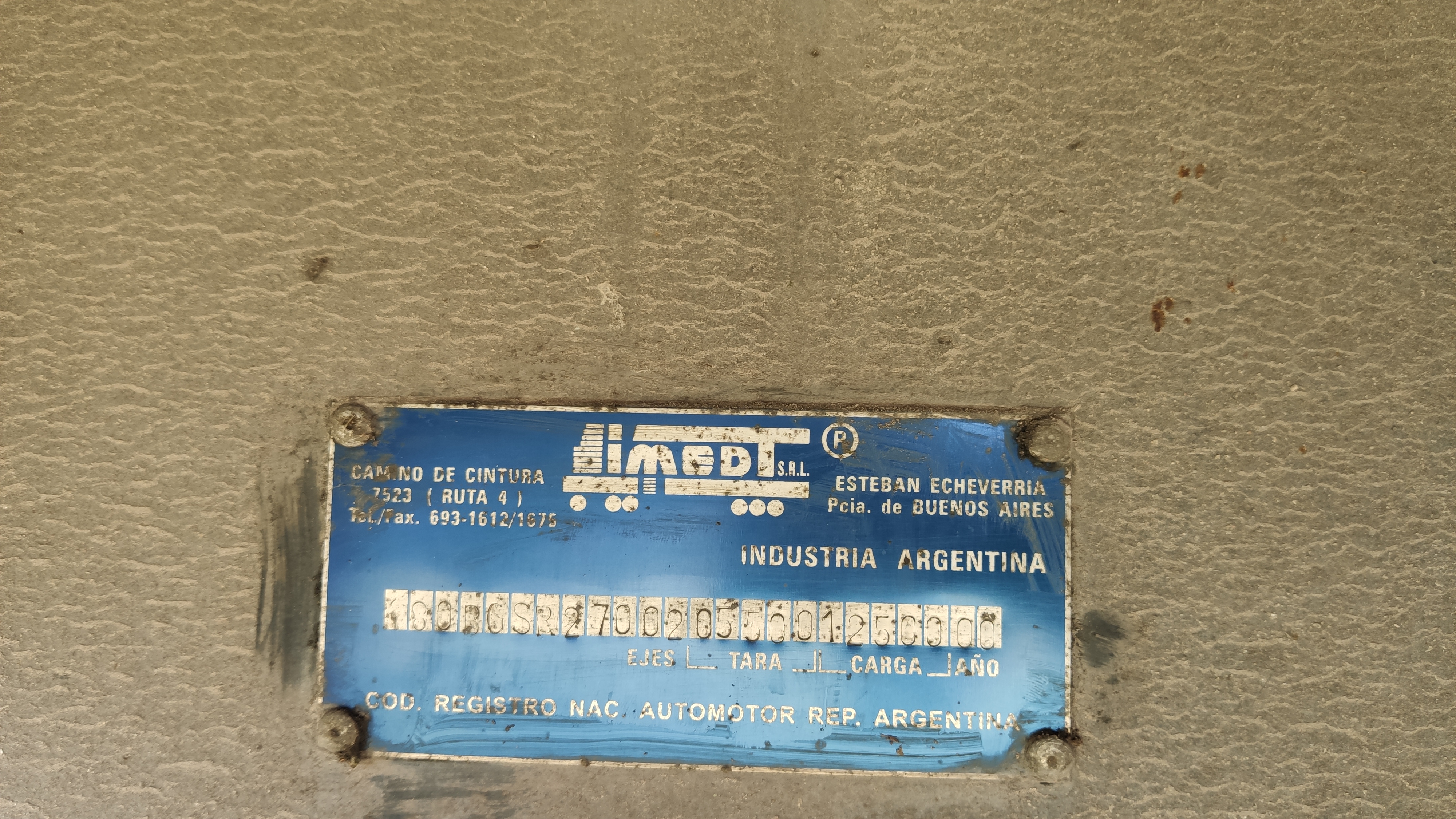 SEMIRREMOLQUE PLAYO BG-IMEDT MODELO SR-PLY O/E-2-2000 - DE 15 MTS APROX. - CARGA 12.500KG - TARA 5.500KG DE 3 EJES CON 12 RUEDAS Y DOS AUXILIOS. |