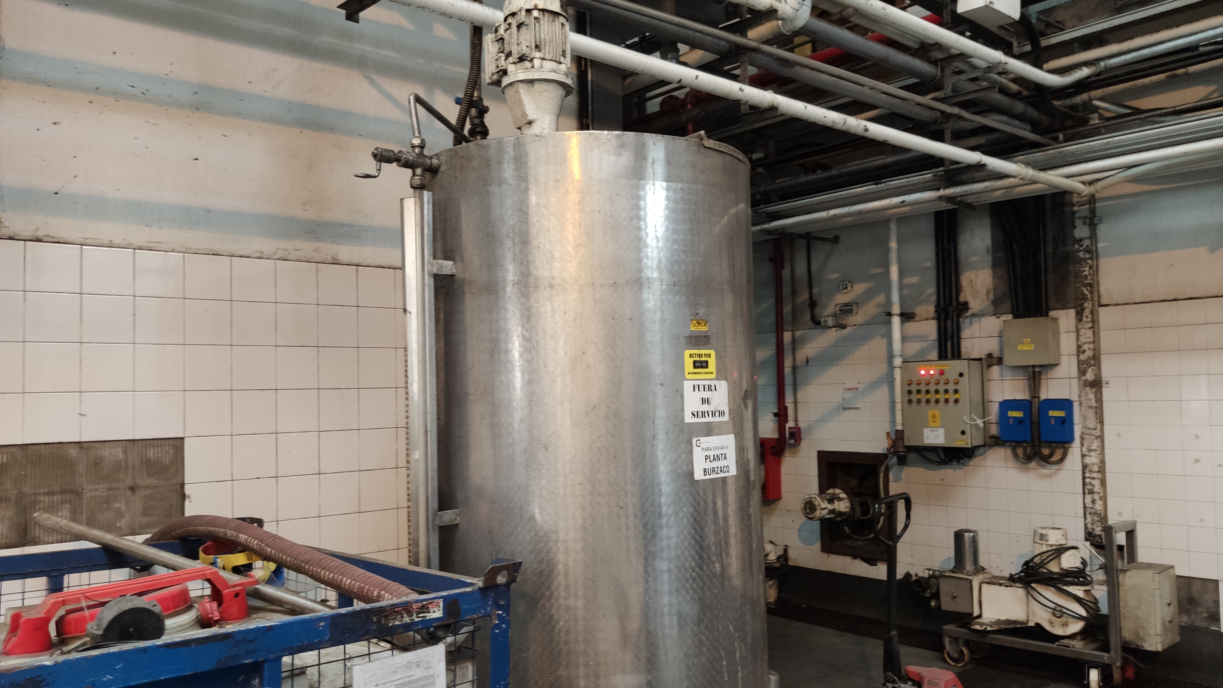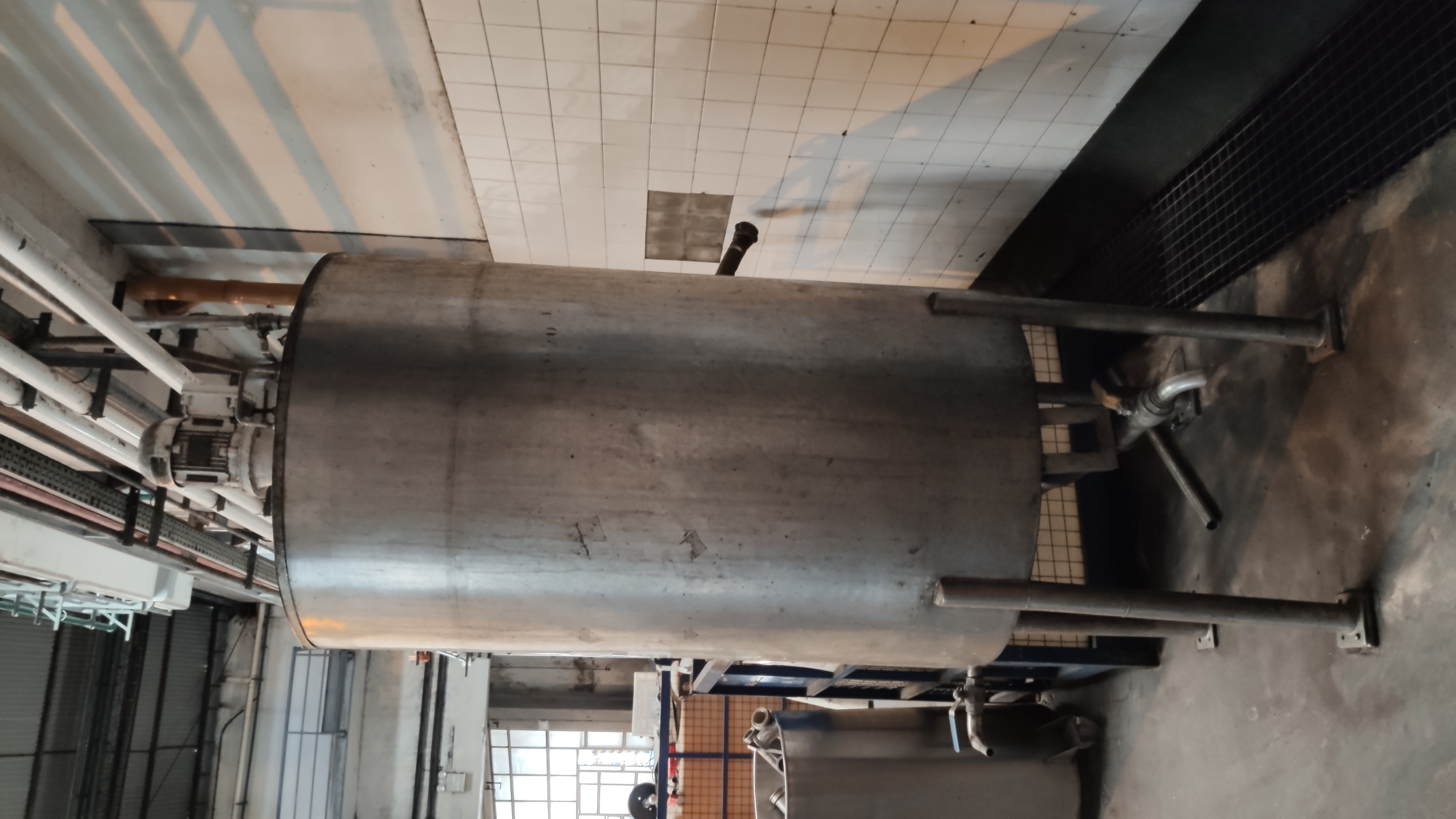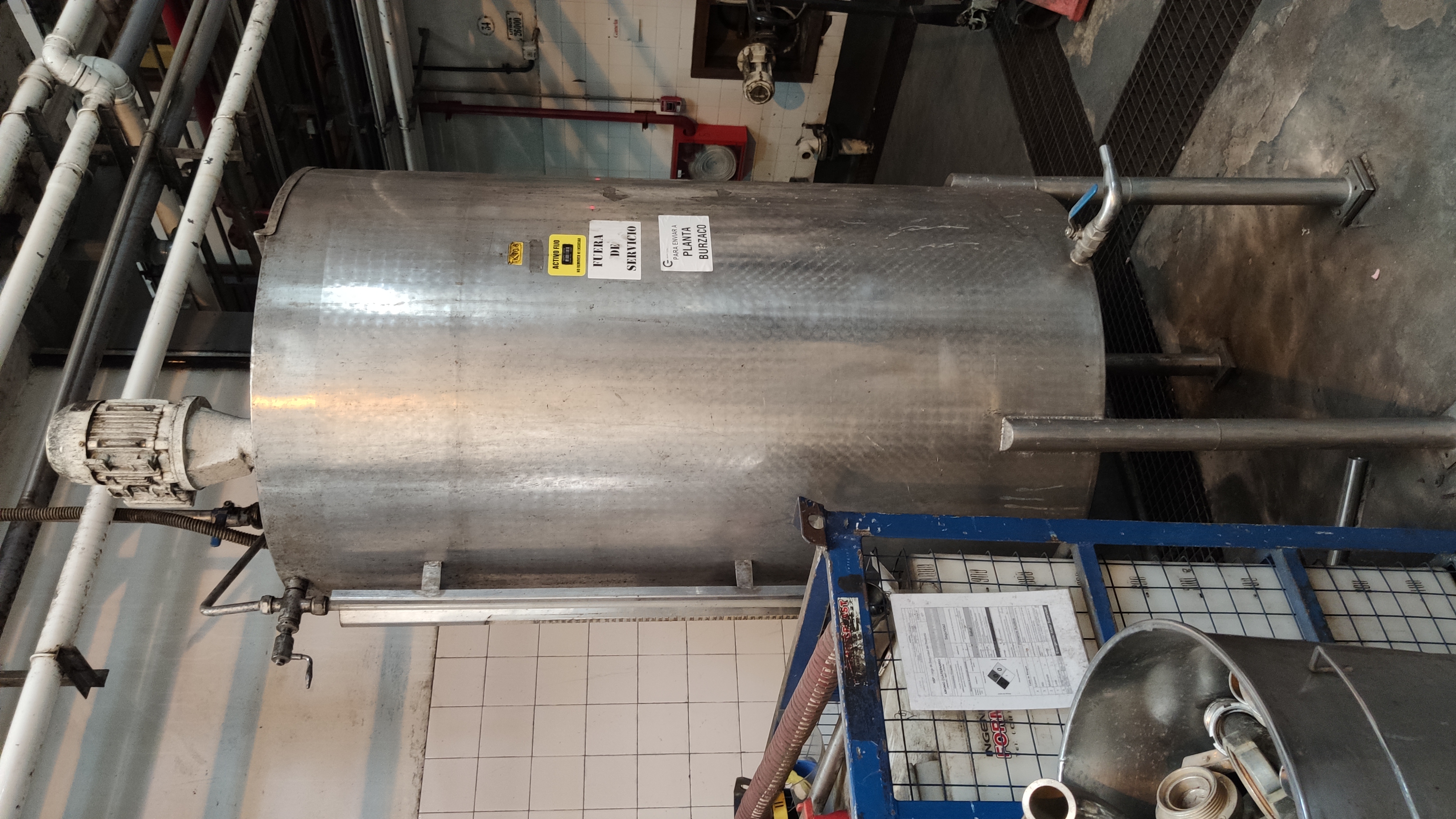 TANQUE TIPO CILINDRICO VERTICAL. CONSTRUIDO EN ACERO INOXIDABLE. CAPACIDAD 1200 LITROS. CON AGITADOR SUPERIOR TREVI DE 1 HP. - ACTIVO Nº 11387 |