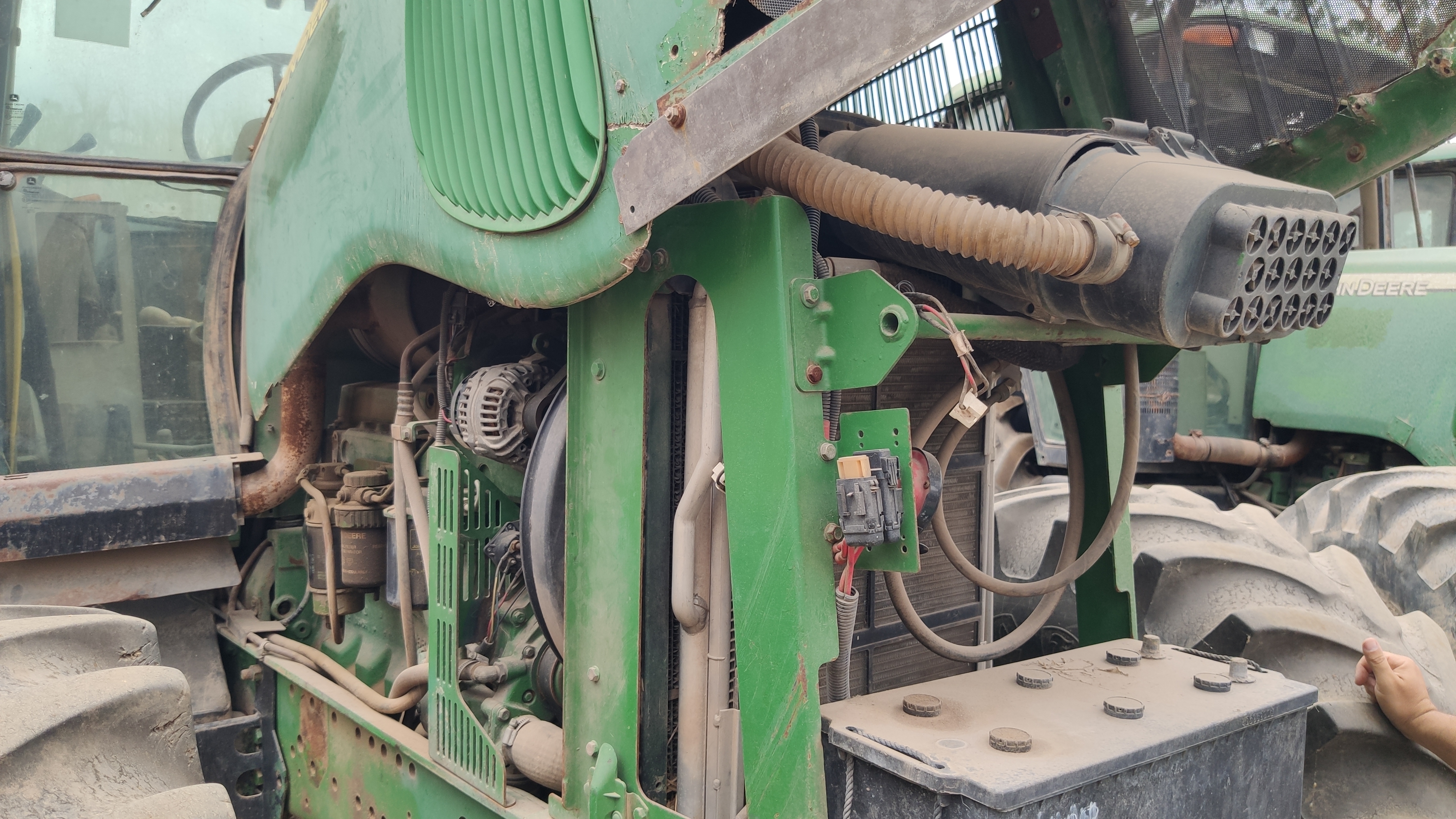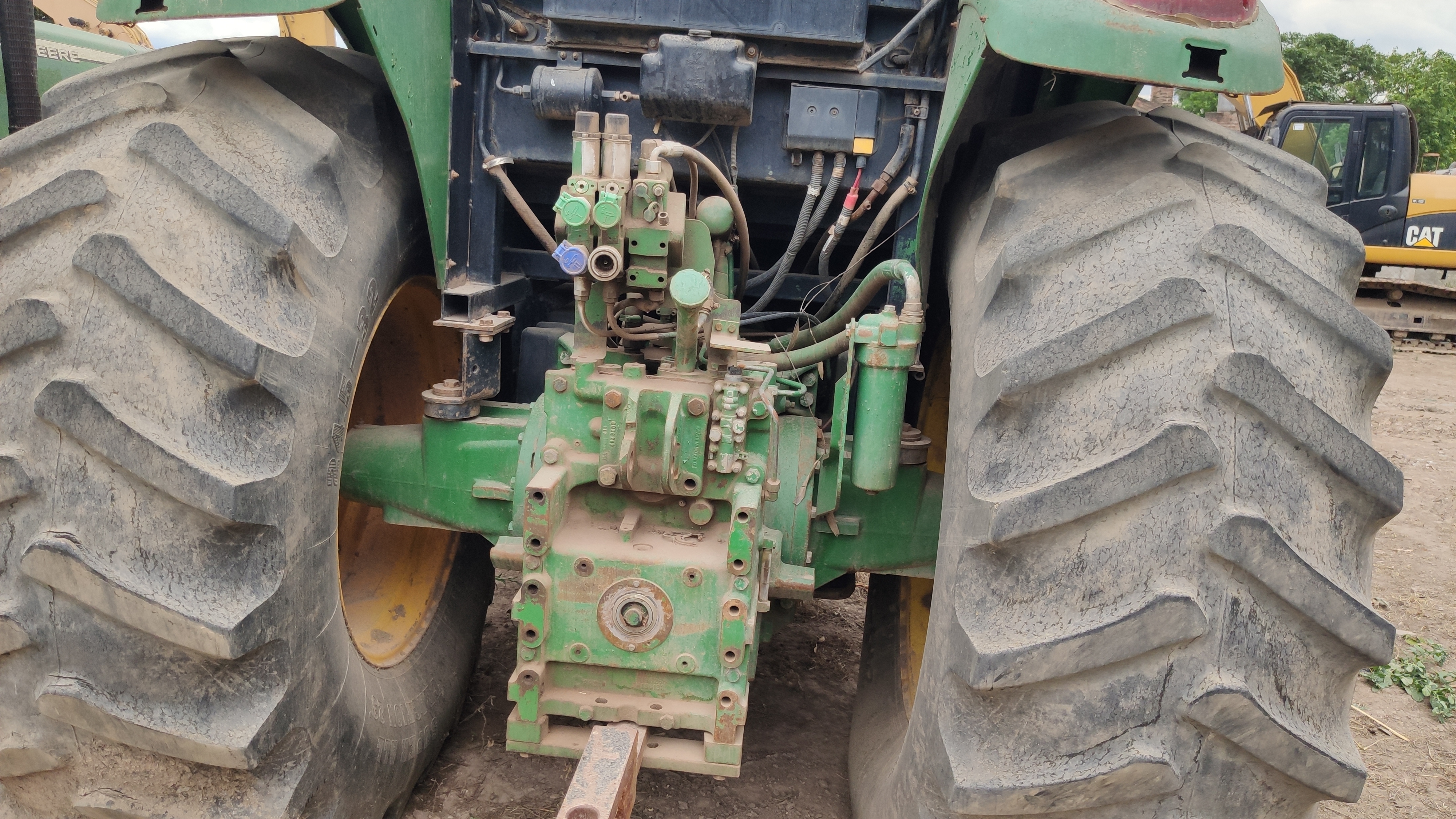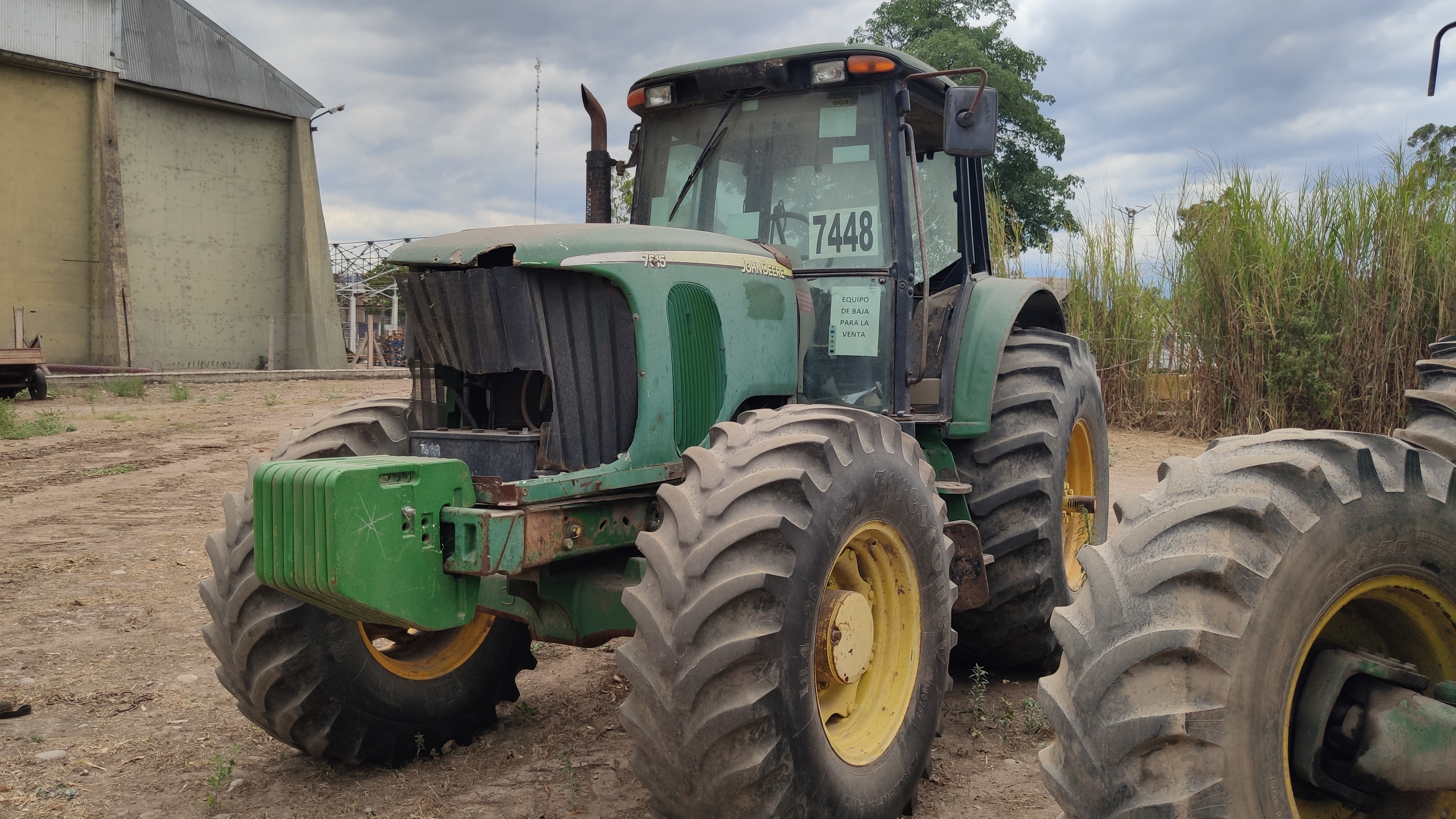 TRACTOR JOHN DEERE 7515 - HS…………- RODADO D18.4-26 T24.5-32 - CARROCERIA CON CONTRAPESO, FIBRA DE CAPOT ROTA, FALTAN FOCOS, FALTA PUERTA CONDUCTOR Y VIDRIO LATERAL DE CABINA - INTERIOR FALTA TABLERO, PLASTICOS VARIOS, ASIENTO SUELTO Y ROTO - MOTOR SIN PROBAR CON RPA, BOMBAS SI, BURRO SI, ALTERNADOR SI, CARDAN SI - INTERNO 7448 |