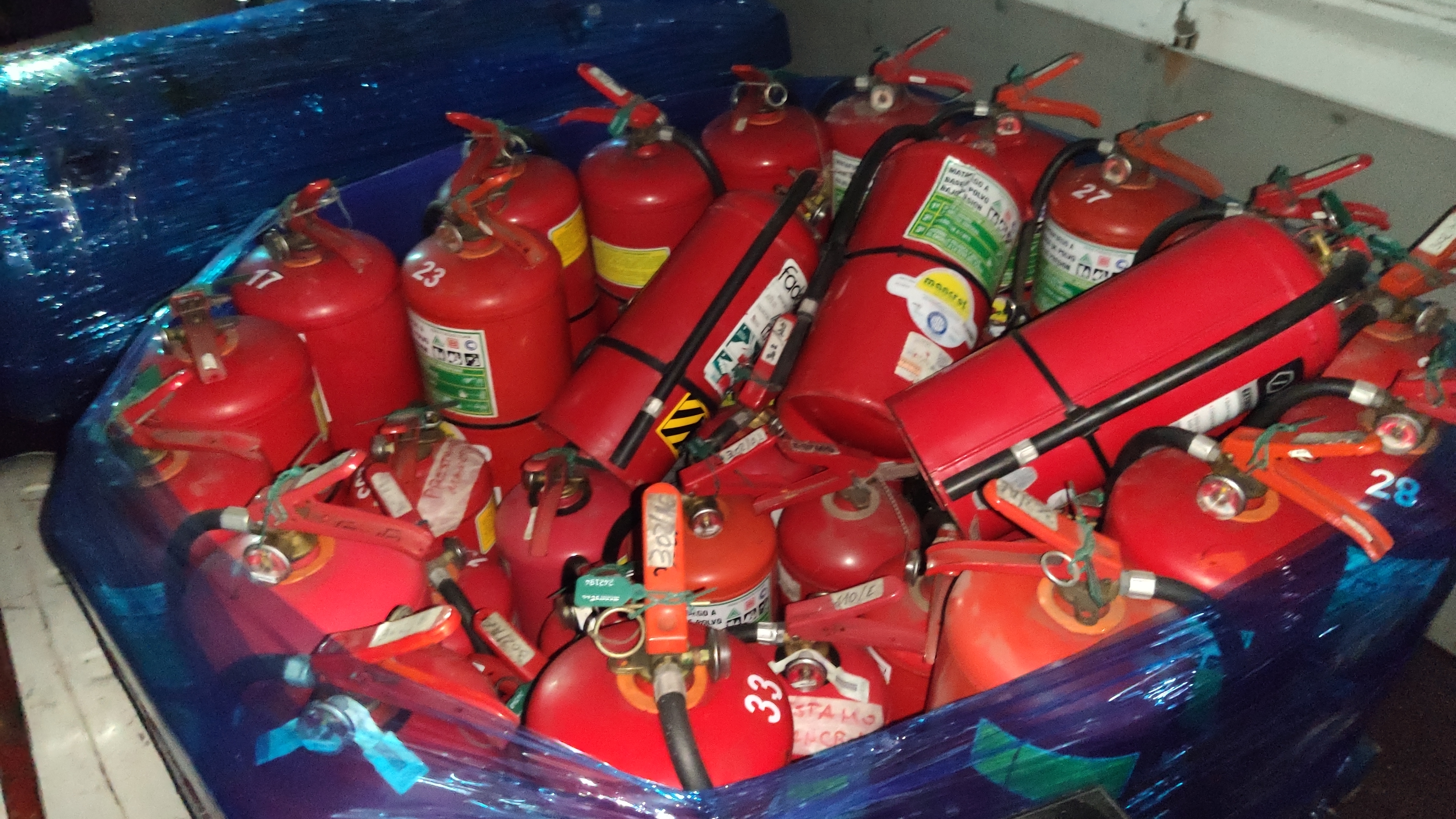 PALET DE APROX 40 MATAFUEGOS MANCROL DE DIFERENTES TAMAÑOS (APROX 20 Nº10, 15 Nº5, ETC…) - USADOS. |