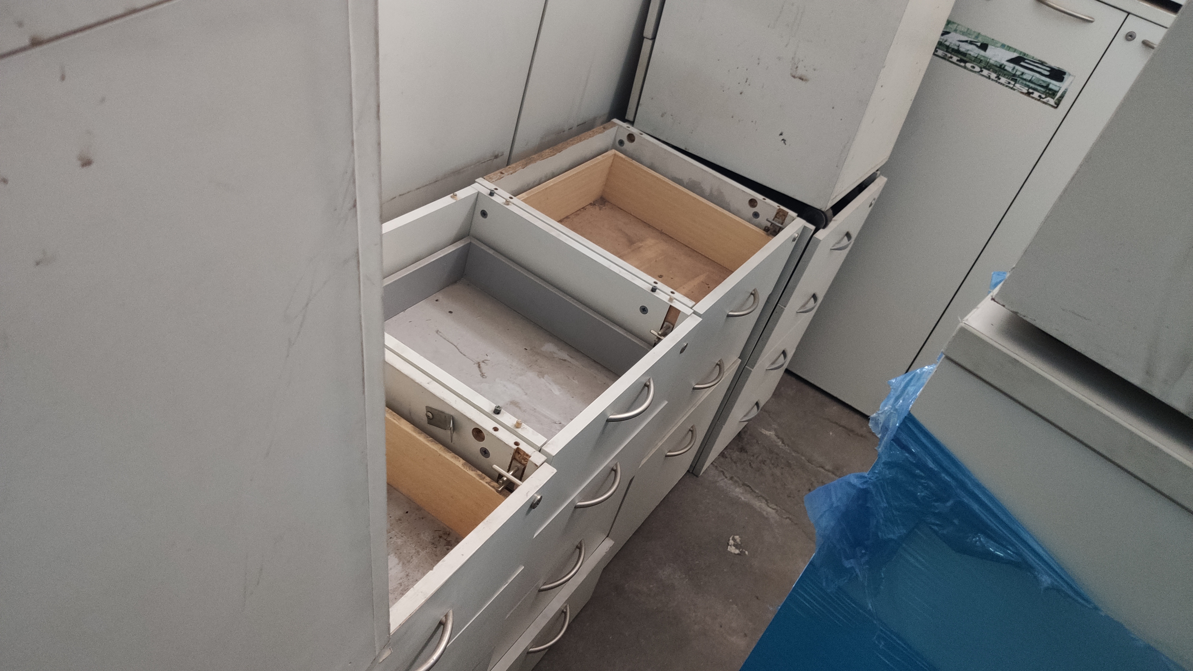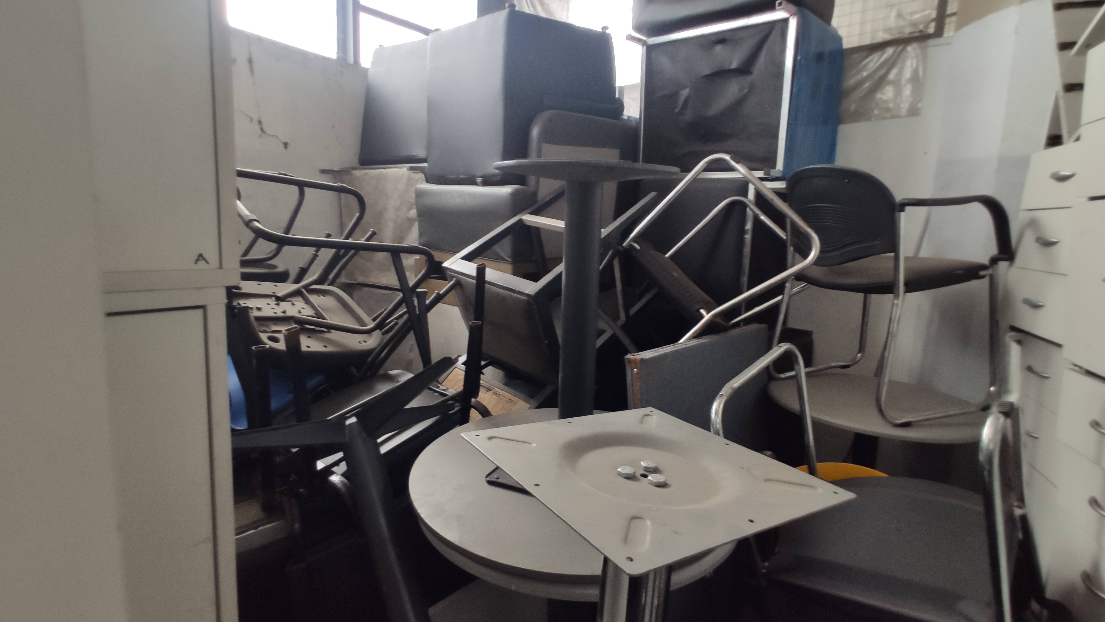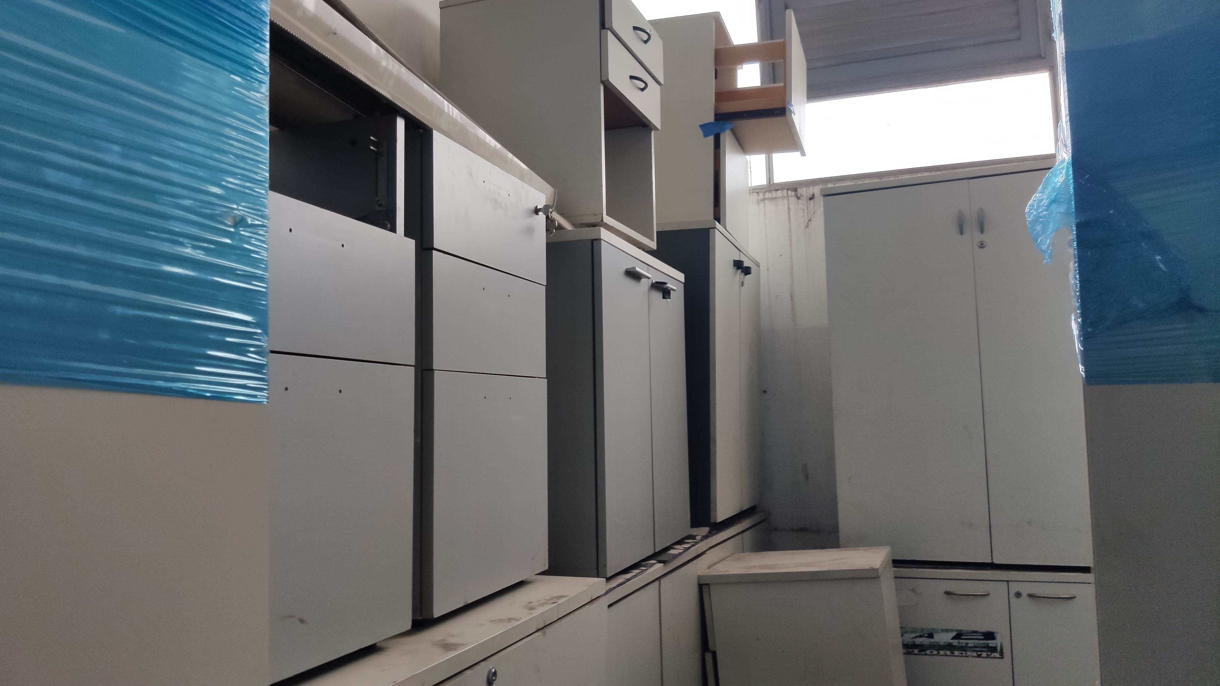 GRAN CANTIDAD DE MUEBLES DE OFICINA (COLOR CREMA EN SU MAYORIA) + PERCHEROS METALICOS (APROX 20) + SILLONES DE UN CUERPO (APROX 10) + SILLAS DE ESCRITORIO VARIAS. |