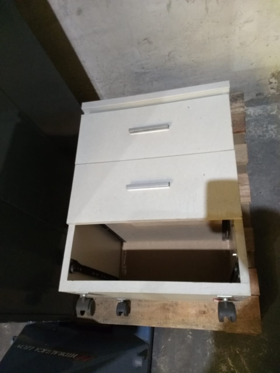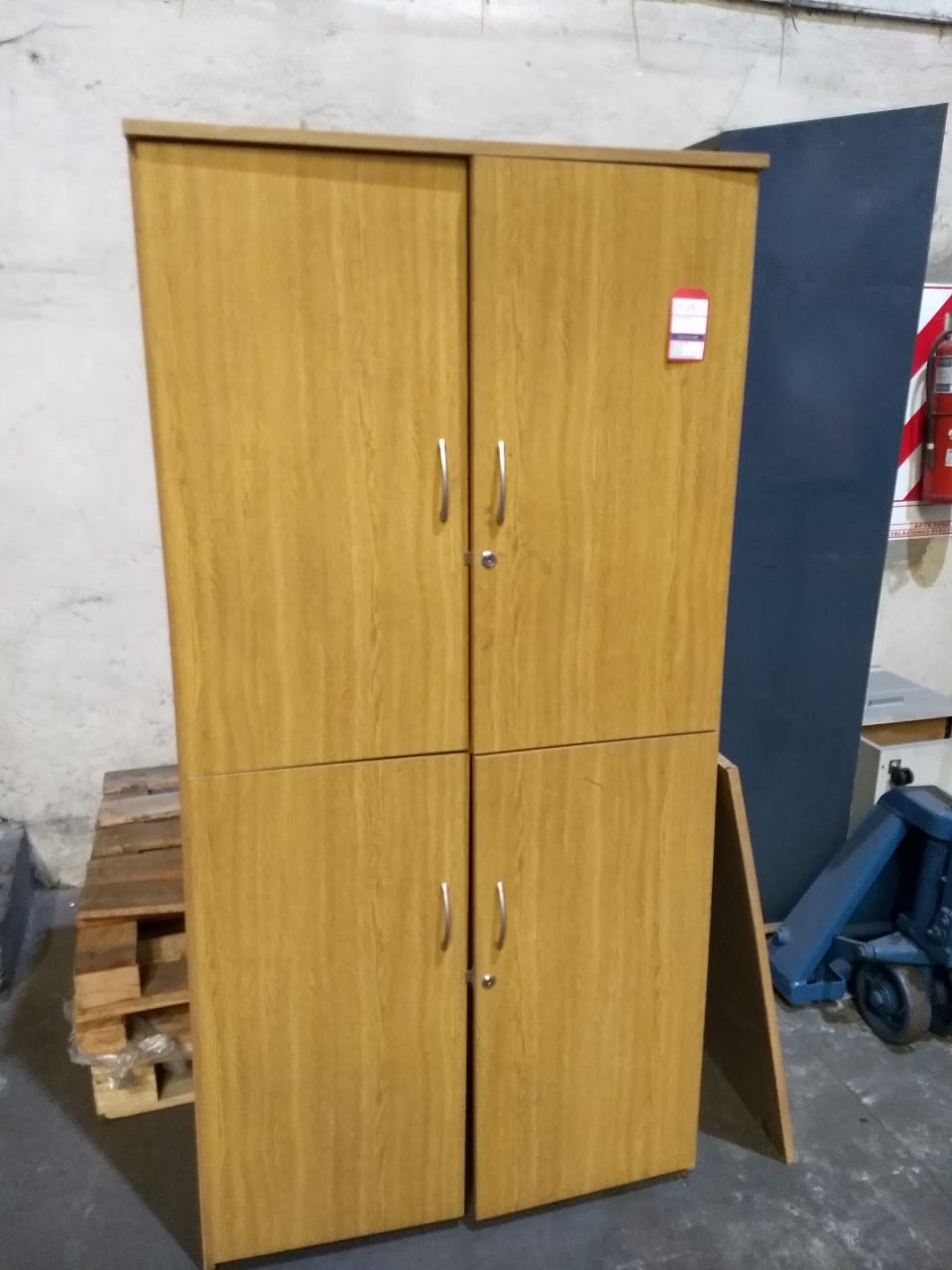 MUEBLES TIPO MUESTRARIO CON ESTANTES (DESARMADOS CANTIDAD 2). ARMARIO DE MADERA CON 4 PUERTAS Y ESTANTES. MESA DE TRABAJO DE MADERA MACIZA. |