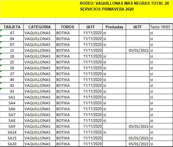 | Observaciones | Preñadas por IATF con Ladron (Colorado) y Botija (negras) |