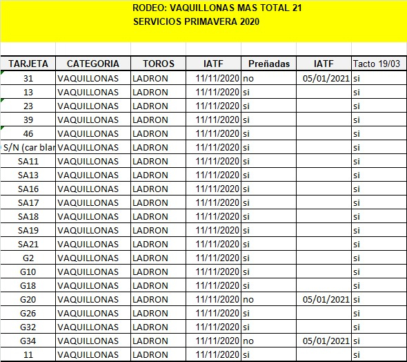 | Observaciones | Preñadas por IATF con Ladron (Colorado) y Botija (negras) |