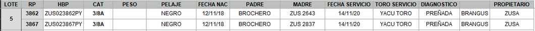 "RP 3862 - Fecha de Servicio: 14/11/2020, Toro de Servicio: YACU TORO