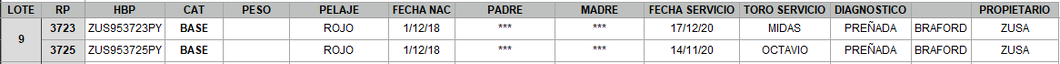 | Estado Repr. | Preñada |