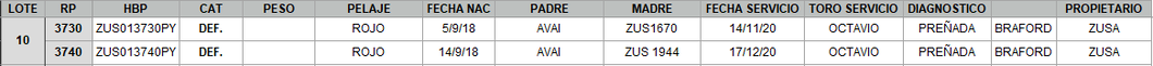 | Estado Repr. | Preñada |