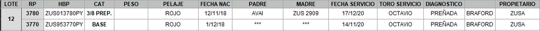 | Estado Repr. | Preñada |