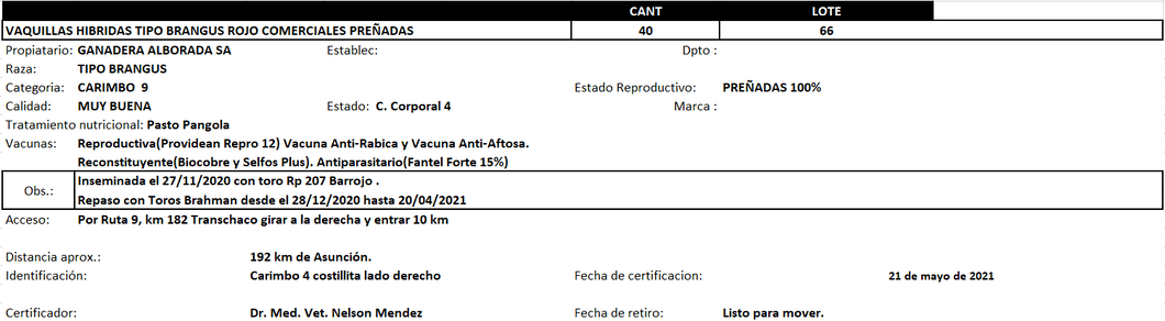 "Inseminada el 27/11/2020 con toro Rp 207 Barrojo.