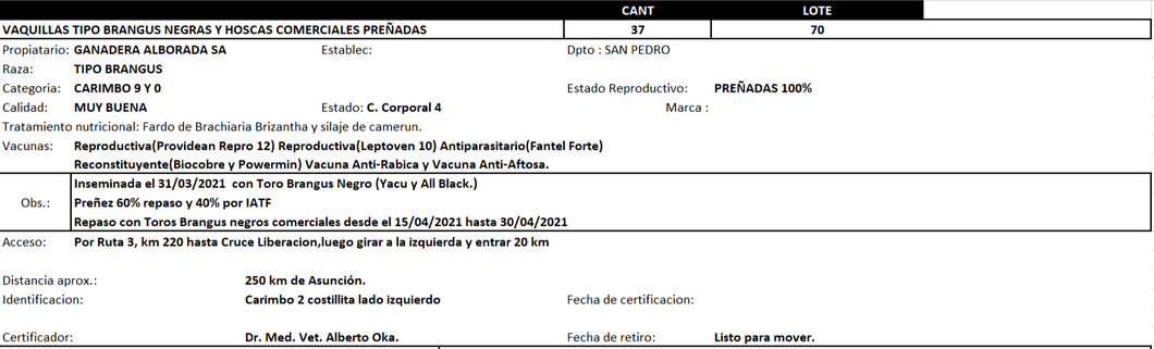 "Inseminada el 31/03/2021 con Toro Brangus Negro (Yacu y All Black.)
