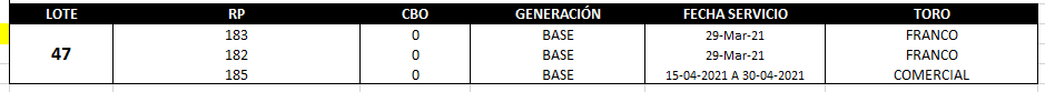 | Estado Repr. | RP 183 - Preñada RP 182 - PreñadaRP 185 - Preñada |