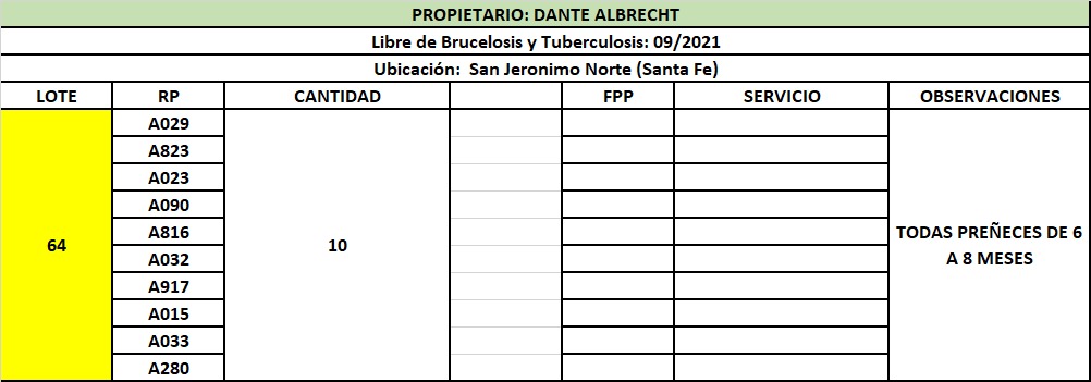 LOTE 64, VAQUILLONAS PREÑADAS DANTE ALBRECHT 🔥 🔥 🔥 Lote Anterior Volver al remate Lote Siguiente Ficha Contacto Santa Fe - San Jerónimo N. Ficha del Lote Identificador: #122757 Cantidad: 10 Categoría: Vaquillonas preñadas Pedigree Plazo 30, 60, 90 y 120 días Raza Holando Argentino Santa Fe - San Jerónimo N. 91 Visualizaciones ClicData Contacto Comercial a cargo: Julio Empresa: Cooperativa Agrícola Ganadera Guillermo Lehmann Nombre*: Teléfono* : E-mail* : Mensaje Enviar Registrese gratis Este contenido Exclusivo está disponible sólo para usuarios registrados Ingresar