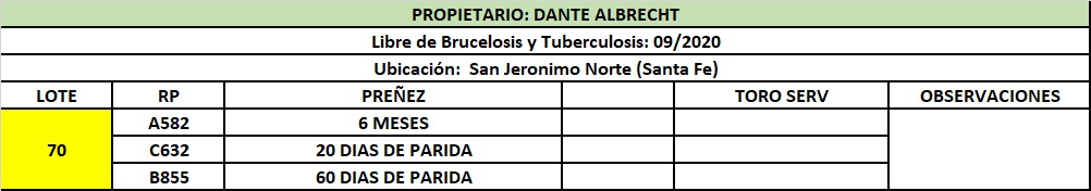LOTE 70, VACAS EN ORDEÑE 1 DANTE ALBRECHT 🔥 🔥 🔥 Lote Anterior Volver al remate Lote Siguiente Ficha Contacto Santa Fe - San Jerónimo N. Ficha del Lote Identificador: #122762 Cantidad: 3 Categoría: Vacas en produccion Pedigree Plazo 30, 60, 90 y 120 días Raza Holando Argentino Santa Fe - San Jerónimo N. 94 Visualizaciones ClicData Contacto Comercial a cargo: Julio Empresa: Cooperativa Agrícola Ganadera Guillermo Lehmann Nombre*: Teléfono* : E-mail* : Mensaje Enviar Registrese gratis Este contenido Exclusivo está disponible sólo para usuarios registrados Ingresar