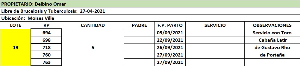 LOTE 19, VAQUILLONA PREÑADA 2 DELBINO OMAR 🔥 🔥 🔥 Lote Anterior Volver al remate Lote Siguiente Ficha Contacto Santa Fe - Moisés Ville Ficha del Lote Identificador: #122778 Cantidad: 5 Categoría: Vaquillonas preñadas Pedigree Plazo 30, 60, 90 y 120 días Raza Holando Argentino Santa Fe - Moisés Ville 112 Visualizaciones ClicData Contacto Comercial a cargo: Julio Empresa: Cooperativa Agrícola Ganadera Guillermo Lehmann Nombre*: Teléfono* : E-mail* : Mensaje Enviar Registrese gratis Este contenido Exclusivo está disponible sólo para usuarios registrados Ingresar