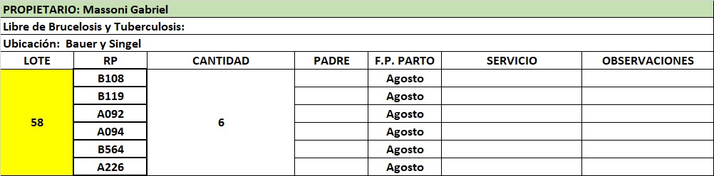 LOTE 58, VAQUILLONA PREÑADA 1 MASSONI GABRIEL 🔥 🔥 🔥 Lote Anterior Volver al remate Lote Siguiente Ficha Contacto Santa Fe - Bauer Y Sigel Ficha del Lote Identificador: #122820 Cantidad: 6 Categoría: Vaquillonas preñadas Pedigree Plazo 30, 60, 90 y 120 días Raza Holando Argentino Santa Fe - Bauer Y Sigel 83 Visualizaciones ClicData Contacto Comercial a cargo: Julio Empresa: Cooperativa Agrícola Ganadera Guillermo Lehmann Nombre*: Teléfono* : E-mail* : Mensaje Enviar Registrese gratis Este contenido Exclusivo está disponible sólo para usuarios registrados Ingresar
