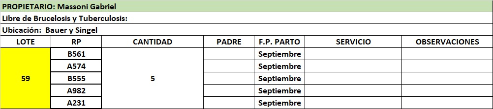 LOTE 59, VAQUILLONA PREÑADA 2 MASSONI GABRIEL Lote Anterior Volver al remate Lote Siguiente Ficha Contacto Santa Fe - Bauer Y Sigel Ficha del Lote Identificador: #122821 Cantidad: 5 Categoría: Vaquillonas preñadas Pedigree Plazo 30, 60, 90 y 120 días Raza Holando Argentino Santa Fe - Bauer Y Sigel 72 Visualizaciones ClicData Contacto Comercial a cargo: Julio Empresa: Cooperativa Agrícola Ganadera Guillermo Lehmann Nombre*: Teléfono* : E-mail* : Mensaje Enviar Registrese gratis Este contenido Exclusivo está disponible sólo para usuarios registrados Ingresar