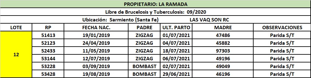 LOTE 12, VAQUILLONAS PREÑADAS 🔥 🔥 🔥 Lote Anterior Volver al remate Lote Siguiente Ficha Contacto Santa Fe - Sarmiento Ficha del Lote Identificador: #122877 Cantidad: 6 Categoría: Vaquillonas adelantadas Pedigree Plazo 30, 60, 90 y 120 días Raza Holando Argentino Santa Fe - Sarmiento 91 Visualizaciones ClicData Contacto Comercial a cargo: Julio Empresa: Cooperativa Agrícola Ganadera Guillermo Lehmann Nombre*: Teléfono* : E-mail* : Mensaje Enviar Registrese gratis Este contenido Exclusivo está disponible sólo para usuarios registrados Ingresar