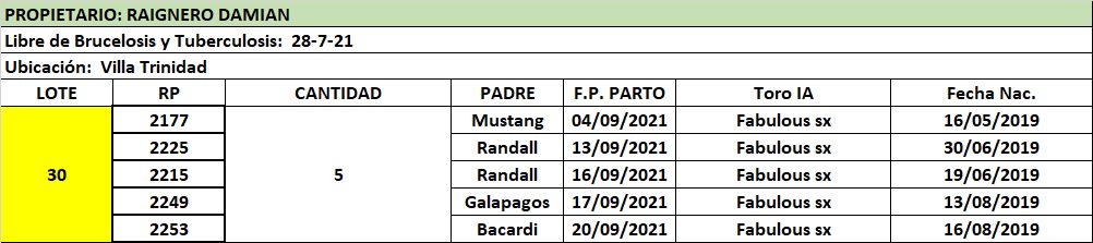 LOTE 30, VAQUILLONAS PREÑADAS 🔥 🔥 🔥 Lote Anterior Volver al remate Lote Siguiente Ficha Contacto Santa Fe - Villa Trinidad Ficha del Lote Identificador: #122891 Cantidad: 5 Categoría: Vaquillonas adelantadas Pedigree Plazo 30, 60, 90 y 120 días Raza Holando Argentino Santa Fe - Villa Trinidad 115 Visualizaciones ClicData Contacto Comercial a cargo: Julio Empresa: Cooperativa Agrícola Ganadera Guillermo Lehmann Nombre*: Teléfono* : E-mail* : Mensaje Enviar Registrese gratis Este contenido Exclusivo está disponible sólo para usuarios registrados Ingresar