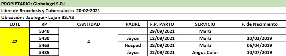 LOTE 42, VAQUILLONAS PREÑADAS 🔥 🔥 🔥 Lote Anterior Volver al remate Lote Siguiente Ficha Contacto Buenos Aires - Ficha del Lote Identificador: #122906 Cantidad: 4 Categoría: Vaquillonas adelantadas Pedigree Plazo 30, 60, 90 y 120 días Raza Holando Argentino Buenos Aires - 90 Visualizaciones ClicData Contacto Comercial a cargo: Julio Empresa: Cooperativa Agrícola Ganadera Guillermo Lehmann Nombre*: Teléfono* : E-mail* : Mensaje Enviar Registrese gratis Este contenido Exclusivo está disponible sólo para usuarios registrados Ingresar