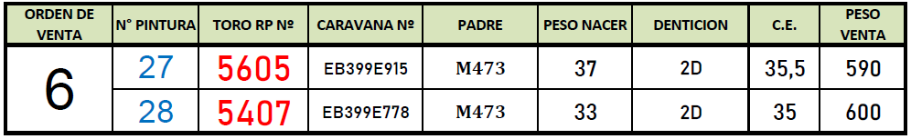 LOTE 6, Toros A. Negros Puros Controlados 🔥 🔥 🔥 Lote Anterior Volver al remate Lote Siguiente Información del Lote Animales del Lote Pedigree Ofertar Contacto La Pampa - Eduardo Castex Información del Lote Identificador: #123264 Cantidad 2 Categoría Toros PC Raza Angus Negro Departamento La Pampa Ubicación Eduardo Castex Plazo 30, 60, 90, 120 y 150 días La Pampa - Eduardo Castex Ofertar Fecha de cierre: 19 de Agosto a las 08:05hs. Prórroga: 5 minutos Aún no tiene ofertas Animales: 27 28 Plazo: Contado 30 días 45 días 60 días 90 días 120 días 180 días Contado, 30 y 60 dias 30-60-90-120-150 Su Oferta en $: − + Step: -0,01 / +0,01 Programar puja hasta: Programar puja hasta Aumentar puja programada 275000.02 275000.2 ** Iniciar sesión para ofertar Ofertar Ofertas Recibidas $ Fecha/Hora Estado Este lote aún no tiene preofertas. 94 Visualizaciones ClicData Animales del Lote RP 27 28 CE 35.5 35 PF 590 600 PN 37 33 PRECIO BASE 0.00 0.00 RP 27 CE 35.5 PF 590 PN 37 PRECIO BASE 0.00 RP 28 CE 35 PF 600 PN 33 PRECIO BASE 0.00 Pedigree Contacto Comercial a cargo: Mauricio Gabriel Empresa: BRANDEMANN CONSIGNATARIA S.R.L. Nombre*: E-mail* : Mensaje Por informes y consultas 02334-444113 Enviar Registrese gratis Este contenido Exclusivo está disponible sólo para usuarios registrados Ingresar