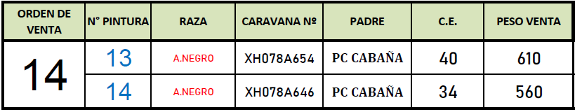 LOTE 14, Toros A. Negros Puros Controlados Lote Anterior Volver al remate Lote Siguiente Información del Lote Animales del Lote Pedigree Ofertar Contacto La Pampa - Eduardo Castex Información del Lote Identificador: #123285 Cantidad 2 Categoría Toros PC Raza Angus Negro Departamento La Pampa Ubicación Eduardo Castex Plazo 30, 60, 90, 120 y 150 días La Pampa - Eduardo Castex Ofertar Fecha de cierre: 19 de Agosto a las 08:05hs. Prórroga: 5 minutos Aún no tiene ofertas Animales: 13 14 Plazo: Contado 30 días 45 días 60 días 90 días 120 días 180 días Contado, 30 y 60 dias 30-60-90-120-150 Su Oferta en $: − + Step: -0,01 / +0,01 Programar puja hasta: Programar puja hasta Aumentar puja programada 235000.02 235000.2 ** Iniciar sesión para ofertar Ofertar Ofertas Recibidas $ Fecha/Hora Estado Este lote aún no tiene preofertas. 54 Visualizaciones ClicData Animales del Lote RP 13 14 CE 40 34 PF 610 560 PRECIO BASE 0.00 0.00 RP 13 CE 40 PF 610 PRECIO BASE 0.00 RP 14 CE 34 PF 560 PRECIO BASE 0.00 Pedigree Contacto Comercial a cargo: Mauricio Gabriel Empresa: BRANDEMANN CONSIGNATARIA S.R.L. Nombre*: E-mail* : Mensaje Por informes y consultas 02334-444113 Enviar Registrese gratis Este contenido Exclusivo está disponible sólo para usuarios registrados Ingresar