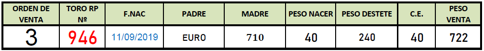 LOTE 3, Toros A. Negros Puros de Pedigree 🔥 🔥 🔥 Lote Anterior Volver al remate Lote Siguiente Información del Lote Animal Pedigree Ofertar Contacto La Pampa - Rancul Información del Lote Identificador: #123290 Categoría Toros PP Raza Angus Negro Departamento La Pampa Ubicación Rancul Plazo 30, 60, 90, 120 y 150 días La Pampa - Rancul Ofertar Fecha de cierre: 19 de Agosto a las 08:05hs. Prórroga: 5 minutos Aún no tiene ofertas Animales: 946 Plazo: Contado 30 días 45 días 60 días 90 días 120 días 180 días Contado, 30 y 60 dias 30-60-90-120-150 Su Oferta en $: − + Step: -0,01 / +0,01 Programar puja hasta: Programar puja hasta Aumentar puja programada 300000.02 300000.2 ** Iniciar sesión para ofertar Ofertar Ofertas Recibidas $ Fecha/Hora Estado Este lote aún no tiene preofertas. 102 Visualizaciones ClicData Animal RP 946 NAC 11/09/2019 CE 40 PF 722 PN 40 PD 240 PRECIO BASE 0.00 RP 946 NAC 11/09/2019 CE 40 PF 722 PN 40 PD 240 PRECIO BASE 0.00 Pedigree Contacto Comercial a cargo: Mauricio Gabriel Empresa: BRANDEMANN CONSIGNATARIA S.R.L. Nombre*: E-mail* : Mensaje Por informes y consultas 02334-444113 Enviar Registrese gratis Este contenido Exclusivo está disponible sólo para usuarios registrados Ingresar