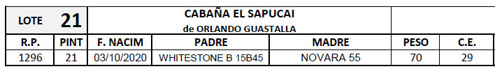 LOTE 25, CAPRINOS MACHOS 21 Lote Anterior Volver al remate Lote Siguiente Ficha Contacto Ofertar Chaco - Machagai Ficha del Lote Identificador: #123686 Categoría: Padrillos Pedigree Plazo Consultar Raza Boer P. P. Chaco - Machagai Ofertar SE PREOFERTA LA CUOTA, TOTAL DE CUOTAS 5 Fecha de cierre: 20 de Agosto a las 09:00hs. Prórroga: 5 minutos Aún no tiene ofertas Plazo: Contado 30 días 45 días 60 días 90 días 120 días 180 días Contado, 30 y 60 dias Su Oferta en $: − + Step: -1.000,00 / +1.000,00 Programar puja hasta: Programar puja hasta Aumentar puja programada 22000 40000 **Oferta al kg Iniciar sesión para ofertar Ofertar Compra por $ 99.000.000,00 Ofertas Recibidas $ Fecha/Hora Estado Este lote aún no tiene preofertas. ¿Estás seguro de comprar el LOTE CAPRINOS MACHOS 21 por $ 99000000 ? 57 Visualizaciones ClicData Contacto Comercial a cargo: FRANCISCO Empresa: Cabaña El Sapucai Nombre*: Teléfono* : E-mail* : Mensaje Enviar Registrese gratis Este contenido Exclusivo está disponible sólo para usuarios registrados Ingresar
