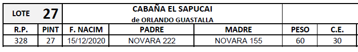 LOTE 31, CAPRINOS MACHOS 27 Lote Anterior Volver al remate Lote Siguiente Ficha Contacto Ofertar Chaco - Machagai Ficha del Lote Identificador: #123692 Categoría: Padrillos Pedigree Plazo Consultar Raza Boer P. P. Chaco - Machagai Ofertar SE PREOFERTA LA CUOTA, TOTAL DE CUOTAS 5 Fecha de cierre: 20 de Agosto a las 09:00hs. Prórroga: 5 minutos Aún no tiene ofertas Plazo: Contado 30 días 45 días 60 días 90 días 120 días 180 días Contado, 30 y 60 dias Su Oferta en $: − + Step: -1.000,00 / +1.000,00 Programar puja hasta: Programar puja hasta Aumentar puja programada 22000 40000 **Oferta al kg Iniciar sesión para ofertar Ofertar Compra por $ 99.000.000,00 Ofertas Recibidas $ Fecha/Hora Estado Este lote aún no tiene preofertas. ¿Estás seguro de comprar el LOTE CAPRINOS MACHOS 27 por $ 99000000 ? 50 Visualizaciones ClicData Contacto Comercial a cargo: FRANCISCO Empresa: Cabaña El Sapucai Nombre*: Teléfono* : E-mail* : Mensaje Enviar Registrese gratis Este contenido Exclusivo está disponible sólo para usuarios registrados Ingresar