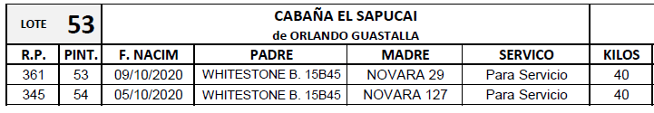 LOTE 53, CAPRINOS HEMBRAS 53 🔥 🔥 🔥 Lote Anterior Volver al remate Ficha Contacto Ofertar Chaco - Machagai Ficha del Lote Identificador: #123714 Cantidad: 2 Categoría: Cabrillas Pedigree Plazo Consultar Raza Boer P. P. Información Genética RP 53 RP 53 PRECIO BASE 0.00 RP 54 RP 54 PRECIO BASE 0.00 Chaco - Machagai Ofertar SE PREOFERTA LA CUOTA, TOTAL DE CUOTAS 5 Fecha de cierre: 20 de Agosto a las 09:00hs. Prórroga: 5 minutos Aún no tiene ofertas Animales: 53 54 Plazo: Contado 30 días 45 días 60 días 90 días 120 días 180 días Contado, 30 y 60 dias Su Oferta en $: − + Step: -1.000,00 / +1.000,00 Programar puja hasta: Programar puja hasta Aumentar puja programada 14000 32000 **Oferta al kg Iniciar sesión para ofertar Ofertar Compra por $ 99.000.000,00 Ofertas Recibidas $ Fecha/Hora Estado Este lote aún no tiene preofertas. ¿Estás seguro de comprar el LOTE CAPRINOS HEMBRAS 53 por $ 99000000 ? 72 Visualizaciones ClicData Contacto Comercial a cargo: FRANCISCO Empresa: Cabaña El Sapucai Nombre*: Teléfono* : E-mail* : Mensaje Enviar Registrese gratis Este contenido Exclusivo está disponible sólo para usuarios registrados Ingresar