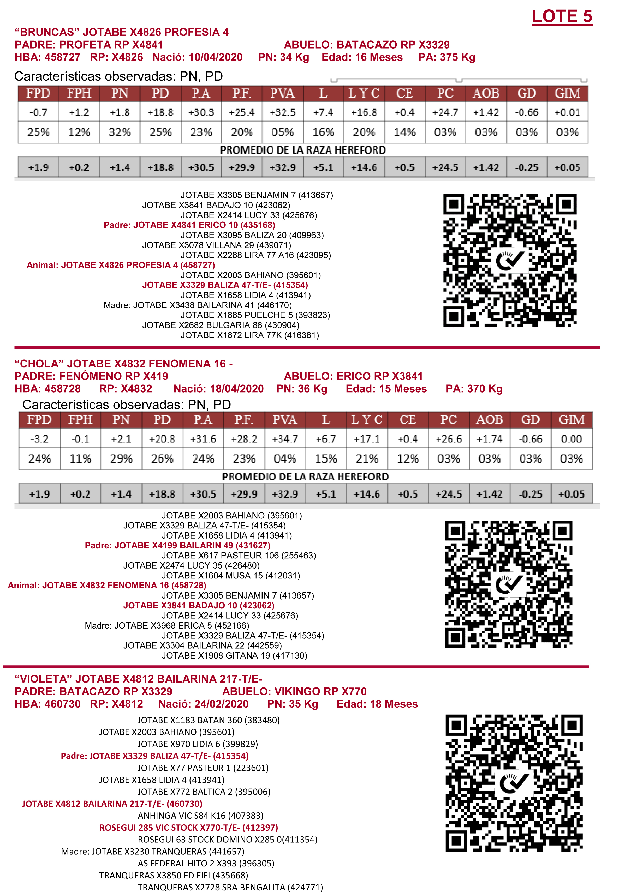 LOTE 5, TERNERAS PURO PEDIGREE (Corral 5) Lote Anterior Volver al remate Lote Siguiente Información del Lote Animales del Lote Pedigree Ofertar Contacto Buenos Aires - Información del Lote Identificador: #125085 Cantidad 3 Categoría Terneras PP Raza Hereford Departamento Buenos Aires Plazo Consultar Buenos Aires - Ofertar Fecha de cierre: 02 de Septiembre a las 12:05hs. Prórroga: 5 minutos Aún no tiene ofertas Animales: 4812 4826 4832 Plazo: Contado 30 días 45 días 60 días 90 días 120 días 180 días Contado, 30 y 60 dias Su Oferta en $: − + Step: -10.000,00 / +10.000,00 Programar puja hasta: Programar puja hasta Aumentar puja programada 270000 450000 **Oferta al bulto Iniciar sesión para ofertar Ofertar Compra por $ 99.000.000,00 Ofertas Recibidas $ Fecha/Hora Estado Este lote aún no tiene preofertas. ¿Estás seguro de comprar el LOTE TERNERAS PURO PEDIGREE (Corral 5) por $ 99000000 ? 83 Visualizaciones ClicData Animales del Lote RP 4812 4826 4832 PRECIO BASE 0.00 0.00 0.00 RP 4812 PRECIO BASE 0.00 RP 4826 PRECIO BASE 0.00 RP 4832 PRECIO BASE 0.00 Pedigree Contacto Comercial a cargo: Paulo Empresa: Caldenes Agropecuaria Nombre*: E-mail* : Mensaje Por informes y consultas 03382 15 418112 Enviar Registrese gratis Este contenido Exclusivo está disponible sólo para usuarios registrados Ingresar