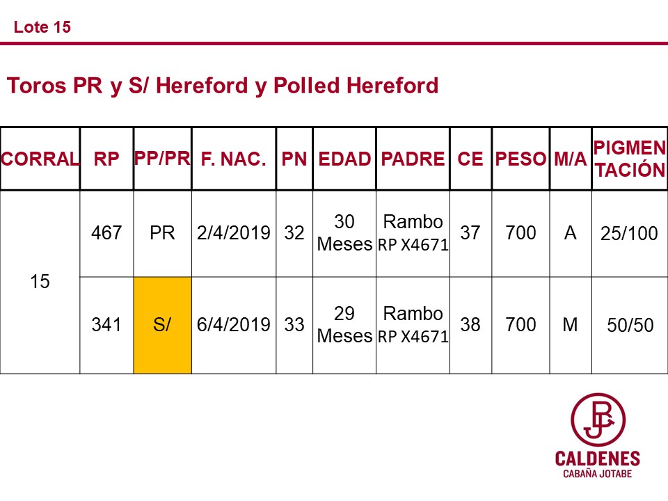 LOTE 10, TORO PURO REGISTRADO(Corral 15) 🔥 🔥 🔥 Lote Anterior Volver al remate Lote Siguiente Información del Lote Animales del Lote Pedigree Ofertar Contacto Buenos Aires - Información del Lote Identificador: #125508 Cantidad 2 Categoría Machos Registrados Raza Hereford Departamento Buenos Aires Plazo Consultar Buenos Aires - Ofertar Fecha de cierre: 02 de Septiembre a las 12:05hs. Prórroga: 5 minutos Aún no tiene ofertas Animales: 467 341 Plazo: Contado 30 días 45 días 60 días 90 días 120 días 180 días Contado, 30 y 60 dias Su Oferta en $: − + Step: -10.000,00 / +10.000,00 Programar puja hasta: Programar puja hasta Aumentar puja programada 240000 420000 **Oferta al bulto Iniciar sesión para ofertar Ofertar Compra por $ 99.000.000,00 Ofertas Recibidas $ Fecha/Hora Estado Este lote aún no tiene preofertas. ¿Estás seguro de comprar el LOTE TORO PURO REGISTRADO(Corral 15) por $ 99000000 ? 142 Visualizaciones ClicData Animales del Lote RP 467 341 PRECIO BASE 0.00 0.00 RP 467 PRECIO BASE 0.00 RP 341 PRECIO BASE 0.00 Pedigree Contacto Comercial a cargo: Paulo Empresa: Caldenes Agropecuaria Nombre*: E-mail* : Mensaje Por informes y consultas 03382 15 418112 Enviar Registrese gratis Este contenido Exclusivo está disponible sólo para usuarios registrados Ingresar