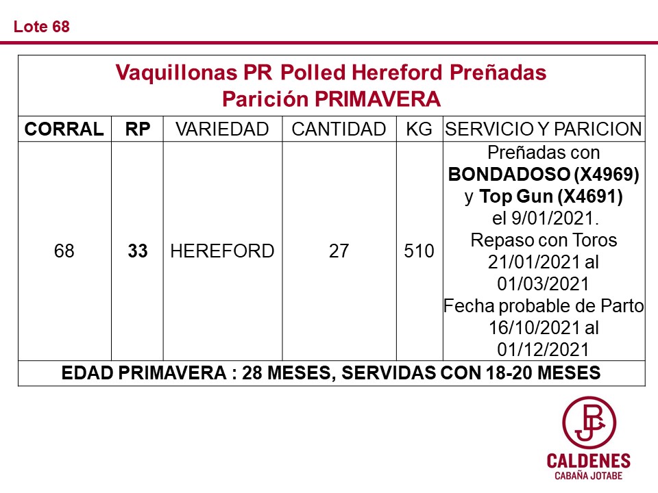LOTE 61, Vaquillonas PR Preñadas Hereford Paricion Primavera(Corral 68)