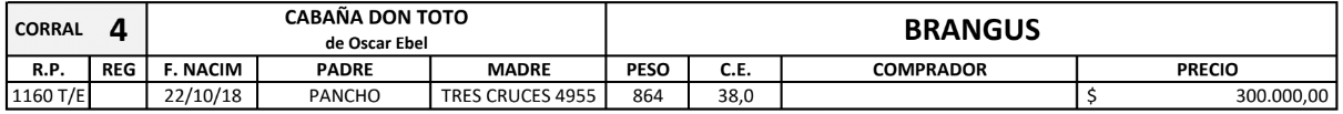 LOTE 2, TOROS(CORRAL 4)BRANGUS "CABAÑA DON TOTO" 🔥 🔥 🔥 Lote Anterior Volver al remate Lote Siguiente Información del Lote Pedigree Ofertar Contacto Chaco - Gral. San Martín Información del Lote Identificador: #126644 Categoría Toros Raza Brangus negro Certificado 1 Departamento Chaco Ubicación Gral. San Martín Plazo Consultar Chaco - Gral. San Martín Ofertar Fecha de cierre: 02 de Septiembre a las 16:05hs. Prórroga: 5 minutos Aún no tiene ofertas Plazo: Contado 30 días 45 días 60 días 90 días 120 días 180 días Contado, 30 y 60 dias Su Oferta en $: − + Step: -5.000,00 / +5.000,00 Programar puja hasta: Programar puja hasta Aumentar puja programada 310000 400000 **Oferta al bulto Iniciar sesión para ofertar Ofertar Compra por $ 99.000.000,00 Ofertas Recibidas $ Fecha/Hora Estado Este lote aún no tiene preofertas. ¿Estás seguro de comprar el LOTE TOROS(CORRAL 4)BRANGUS "CABAÑA DON TOTO" por $ 99000000 ? 82 Visualizaciones ClicData Pedigree Contacto Comercial a cargo: Santiago Usandizaga Empresa: CASA USANDIZAGA S.A. Nombre*: E-mail* : Mensaje Enviar Registrese gratis Este contenido Exclusivo está disponible sólo para usuarios registrados Ingresar