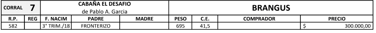 LOTE 8, TOROS(CORRAL 7)BRANGUS "CABAÑA EL DESAFIO" Lote Anterior Volver al remate Lote Siguiente Información del Lote Pedigree Ofertar Contacto Chaco - Gral. San Martín Información del Lote Identificador: #126667 Categoría Toros Raza Brangus Certificado 1 Departamento Chaco Ubicación Gral. San Martín Plazo Consultar Chaco - Gral. San Martín Ofertar Fecha de cierre: 02 de Septiembre a las 16:05hs. Prórroga: 5 minutos Aún no tiene ofertas Plazo: Contado 30 días 45 días 60 días 90 días 120 días 180 días Contado, 30 y 60 dias Su Oferta en $: − + Step: -5.000,00 / +5.000,00 Programar puja hasta: Programar puja hasta Aumentar puja programada 310000 400000 **Oferta al bulto Iniciar sesión para ofertar Ofertar Compra por $ 99.000.000,00 Ofertas Recibidas $ Fecha/Hora Estado Este lote aún no tiene preofertas. ¿Estás seguro de comprar el LOTE TOROS(CORRAL 7)BRANGUS "CABAÑA EL DESAFIO" por $ 99000000 ? 41 Visualizaciones ClicData Pedigree Contacto Comercial a cargo: Santiago Usandizaga Empresa: CASA USANDIZAGA S.A. Nombre*: E-mail* : Mensaje Enviar Registrese gratis Este contenido Exclusivo está disponible sólo para usuarios registrados Ingresar