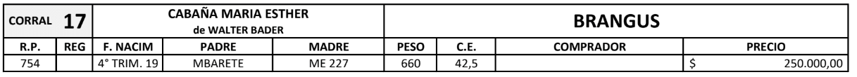 LOTE 33, TOROS(CORRAL 17)BRANGUS "CABAÑA MARIA ESTHER" 🔥 🔥 🔥 Lote Anterior Volver al remate Lote Siguiente Información del Lote Pedigree Ofertar Contacto Chaco - Gral. San Martín Información del Lote Identificador: #126706 Categoría Toros Raza Brangus colorado Certificado 1 Departamento Chaco Ubicación Gral. San Martín Plazo Consultar Chaco - Gral. San Martín Ofertar Fecha de cierre: 02 de Septiembre a las 16:05hs. Prórroga: 5 minutos Aún no tiene ofertas Plazo: Contado 30 días 45 días 60 días 90 días 120 días 180 días Contado, 30 y 60 dias Su Oferta en $: − + Step: -5.000,00 / +5.000,00 Programar puja hasta: Programar puja hasta Aumentar puja programada 260000 350000 **Oferta al bulto Iniciar sesión para ofertar Ofertar Compra por $ 99.000.000,00 Ofertas Recibidas $ Fecha/Hora Estado Este lote aún no tiene preofertas. ¿Estás seguro de comprar el LOTE TOROS(CORRAL 17)BRANGUS "CABAÑA MARIA ESTHER" por $ 99000000 ? 80 Visualizaciones ClicData Pedigree Contacto Comercial a cargo: Santiago Usandizaga Empresa: CASA USANDIZAGA S.A. Nombre*: E-mail* : Mensaje Enviar Registrese gratis Este contenido Exclusivo está disponible sólo para usuarios registrados Ingresar