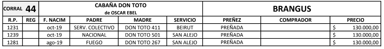 LOTE 46, VAQUILLONAS PREÑADAS(CORRAL 44)BRANGUS "CABAÑA DON TOTO" 🔥 🔥 🔥 Lote Anterior Volver al remate Lote Siguiente Información del Lote Animales del Lote Pedigree Ofertar Contacto Chaco - Gral. San Martín Información del Lote Identificador: #126727 Cantidad 3 Categoría Vaquillonas preñadas Raza Brangus Certificado 1 Departamento Chaco Ubicación Gral. San Martín Plazo Consultar Chaco - Gral. San Martín Ofertar Fecha de cierre: 02 de Septiembre a las 16:05hs. Prórroga: 5 minutos Aún no tiene ofertas Animales: 1231 1239 1281 Plazo: Contado 30 días 45 días 60 días 90 días 120 días 180 días Contado, 30 y 60 dias Su Oferta en $: − + Step: -5.000,00 / +5.000,00 Programar puja hasta: Programar puja hasta Aumentar puja programada 140000 230000 **Oferta al bulto Iniciar sesión para ofertar Ofertar Compra por $ 99.000.000,00 Ofertas Recibidas $ Fecha/Hora Estado Este lote aún no tiene preofertas. ¿Estás seguro de comprar el LOTE VAQUILLONAS PREÑADAS(CORRAL 44)BRANGUS "CABAÑA DON TOTO" por $ 99000000 ? 55 Visualizaciones ClicData Animales del Lote RP 1231 1239 1281 PRECIO BASE 0.00 0.00 0.00 RP 1231 PRECIO BASE 0.00 RP 1239 PRECIO BASE 0.00 RP 1281 PRECIO BASE 0.00 Pedigree Contacto Comercial a cargo: Santiago Usandizaga Empresa: CASA USANDIZAGA S.A. Nombre*: E-mail* : Mensaje Enviar Registrese gratis Este contenido Exclusivo está disponible sólo para usuarios registrados Ingresar