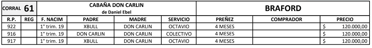 LOTE 47, VAQUILLONAS PREÑADAS(CORRAL 61)BRAFORD "CABAÑA DON CARLIN" Lote Anterior Volver al remate Lote Siguiente Información del Lote Animales del Lote Pedigree Ofertar Contacto Chaco - Gral. San Martín Información del Lote Identificador: #126728 Cantidad 3 Categoría Vaquillonas preñadas Raza Braford Certificado 1 Departamento Chaco Ubicación Gral. San Martín Plazo Consultar Chaco - Gral. San Martín Ofertar Fecha de cierre: 02 de Septiembre a las 16:05hs. Prórroga: 5 minutos Aún no tiene ofertas Animales: 922 916 917 Plazo: Contado 30 días 45 días 60 días 90 días 120 días 180 días Contado, 30 y 60 dias Su Oferta en $: − + Step: -5.000,00 / +5.000,00 Programar puja hasta: Programar puja hasta Aumentar puja programada 130000 220000 **Oferta al bulto Iniciar sesión para ofertar Ofertar Compra por $ 99.000.000,00 Ofertas Recibidas $ Fecha/Hora Estado Este lote aún no tiene preofertas. ¿Estás seguro de comprar el LOTE VAQUILLONAS PREÑADAS(CORRAL 61)BRAFORD "CABAÑA DON CARLIN" por $ 99000000 ? 29 Visualizaciones ClicData Animales del Lote RP 922 916 917 PRECIO BASE 0.00 0.00 0.00 RP 922 PRECIO BASE 0.00 RP 916 PRECIO BASE 0.00 RP 917 PRECIO BASE 0.00 Pedigree Contacto Comercial a cargo: Santiago Usandizaga Empresa: CASA USANDIZAGA S.A. Nombre*: E-mail* : Mensaje Enviar Registrese gratis Este contenido Exclusivo está disponible sólo para usuarios registrados Ingresar