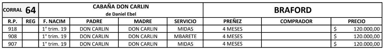 LOTE 57, VAQUILLONAS PREÑADAS(CORRAL 64)BRAFORD "CABAÑA DON CARLIN" Lote Anterior Volver al remate Lote Siguiente Información del Lote Animales del Lote Pedigree Ofertar Contacto Chaco - Gral. San Martín Información del Lote Identificador: #126739 Cantidad 3 Categoría Vaquillonas preñadas Raza Braford Certificado 1 Departamento Chaco Ubicación Gral. San Martín Plazo Consultar Chaco - Gral. San Martín Ofertar Fecha de cierre: 02 de Septiembre a las 16:05hs. Prórroga: 5 minutos Aún no tiene ofertas Animales: 918 908 907 Plazo: Contado 30 días 45 días 60 días 90 días 120 días 180 días Contado, 30 y 60 dias Su Oferta en $: − + Step: -5.000,00 / +5.000,00 Programar puja hasta: Programar puja hasta Aumentar puja programada 130000 220000 **Oferta al bulto Iniciar sesión para ofertar Ofertar Compra por $ 99.000.000,00 Ofertas Recibidas $ Fecha/Hora Estado Este lote aún no tiene preofertas. ¿Estás seguro de comprar el LOTE VAQUILLONAS PREÑADAS(CORRAL 64)BRAFORD "CABAÑA DON CARLIN" por $ 99000000 ? 37 Visualizaciones ClicData Animales del Lote RP 918 908 907 PRECIO BASE 0.00 0.00 0.00 RP 918 PRECIO BASE 0.00 RP 908 PRECIO BASE 0.00 RP 907 PRECIO BASE 0.00 Pedigree Contacto Comercial a cargo: Santiago Usandizaga Empresa: CASA USANDIZAGA S.A. Nombre*: E-mail* : Mensaje Enviar Registrese gratis Este contenido Exclusivo está disponible sólo para usuarios registrados Ingresar