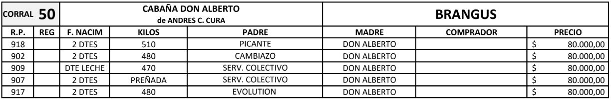 LOTE 65, VAQUILLONAS PARA SERVICIO(CORRAL 50)BRANGUS "CABAÑA DON ALBERTO" Lote Anterior Volver al remate Lote Siguiente Información del Lote Pedigree Ofertar Contacto Chaco - Gral. San Martín Información del Lote Identificador: #126754 Cantidad 5 Categoría Vaquillonas P/ entorar Raza Brangus Certificado 1 Departamento Chaco Ubicación Gral. San Martín Plazo Consultar Chaco - Gral. San Martín Ofertar Fecha de cierre: 02 de Septiembre a las 16:05hs. Prórroga: 5 minutos Aún no tiene ofertas Plazo: Contado 30 días 45 días 60 días 90 días 120 días 180 días Contado, 30 y 60 dias Su Oferta en $: − + Step: -5.000,00 / +5.000,00 Programar puja hasta: Programar puja hasta Aumentar puja programada 90000 180000 **Oferta al bulto Iniciar sesión para ofertar Ofertar Compra por $ 99.000.000,00 Ofertas Recibidas $ Fecha/Hora Estado Este lote aún no tiene preofertas. ¿Estás seguro de comprar el LOTE VAQUILLONAS PARA SERVICIO(CORRAL 50)BRANGUS "CABAÑA DON ALBERTO" por $ 99000000 ? 35 Visualizaciones ClicData Pedigree Contacto Comercial a cargo: Santiago Usandizaga Empresa: CASA USANDIZAGA S.A. Nombre*: E-mail* : Mensaje Enviar Registrese gratis Este contenido Exclusivo está disponible sólo para usuarios registrados Ingresar