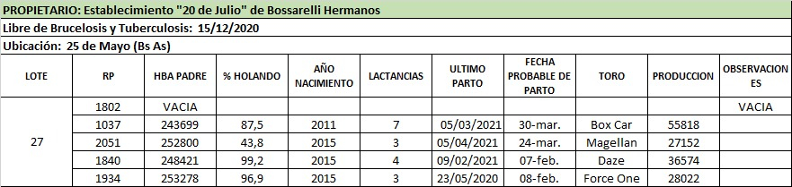Vacas en produccion