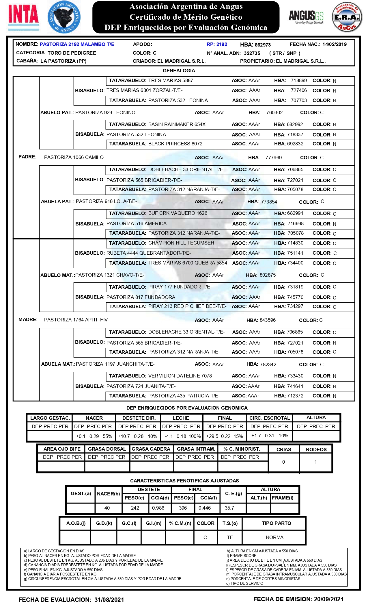 | Raza | Angus |