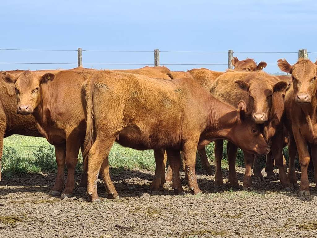 Buen Lote de vaquillonas preñadas partición Marzo/Abril, coloradas, entoradas de 20/22 meses, con estado de campo duro de cria. Son 99 marca liquida separadas en 3 lotes. Buena genética, se hacen buenas vacas. Se venden desde el campo.