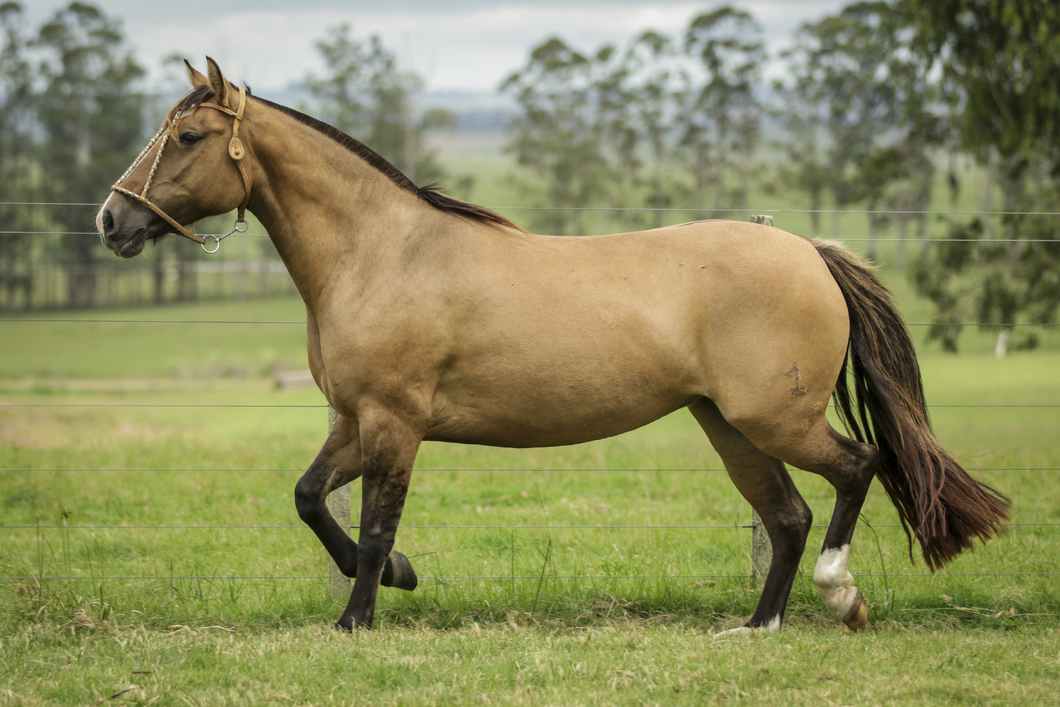 Una oferta destacada de las pocas hijas de Lanceiro Simpatía que saldrán a la venta en este Remate en madre Jagüel Fenicia(BT Martini y Jagüel Lenga) Gran Campeona expo San Carlos 2008, esta gateada de buena estructura, muy vistosa, de buenas líneas, de muy buen andar, buenos movimientos. Probada en la estancia con buenas aptitudes de trabajo y función. Recomendada para gente campera. Hay que seguirla. Una oportunidad de hacerse con una yegua para disfrutarla, de muy buen futuro, para tareas de campo o para pruebas de la raza.