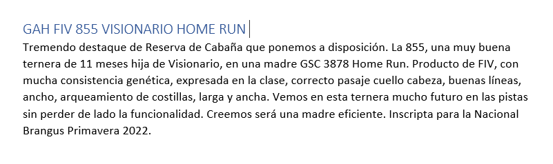 | NOMBRE | GAH FIV 855 VISIONARIO HOME RUN |