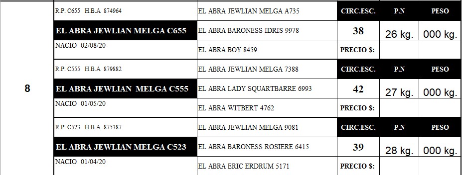 LOTE 8, TOROS PUROS DE PEDIGREE 🔥 🔥 🔥 Lote Anterior Volver al remate Lote Siguiente Información del Lote Animales del Lote Pedigree Ofertar Contacto Buenos Aires - Daireaux - Buenos Aires Información del Lote Identificador: #172769 Cantidad 2 Categoría Toros PP Departamento Buenos Aires Ubicación Daireaux - Buenos Aires Buenos Aires - Daireaux - Buenos Aires Ofertar **LA PRE OFERTA ES POR UN ANIMAL Fecha de cierre: 07 de Septiembre a las 20:00hs. Aún no tiene ofertas Animales: (1)-C655 (2)-C555 Plazo: Contado 30 días 45 días 60 días 90 días 120 días 180 días Contado, 30 y 60 dias Su Oferta en $: − + Step: -0,01 / +0,01 Programar puja hasta: Programar puja hasta Aumentar puja programada 700000.02 700000.2 ** Iniciar sesión para ofertar Ofertar Ofertas Recibidas $ Fecha/Hora Estado Este lote aún no tiene preofertas. 232 Visualizaciones ClicData Animales del Lote RP (1)-C655 (2)-C555 PRECIO BASE 0.00 0.00 RP (1)-C655 PRECIO BASE 0.00 RP (2)-C555 PRECIO BASE 0.00 Pedigree Contacto Empresa: MONASTERIO TATTERSALL S.A. Nombre*: E-mail* : Mensaje Enviar Registrese gratis Este contenido Exclusivo está disponible sólo para usuarios registrados Ingresar