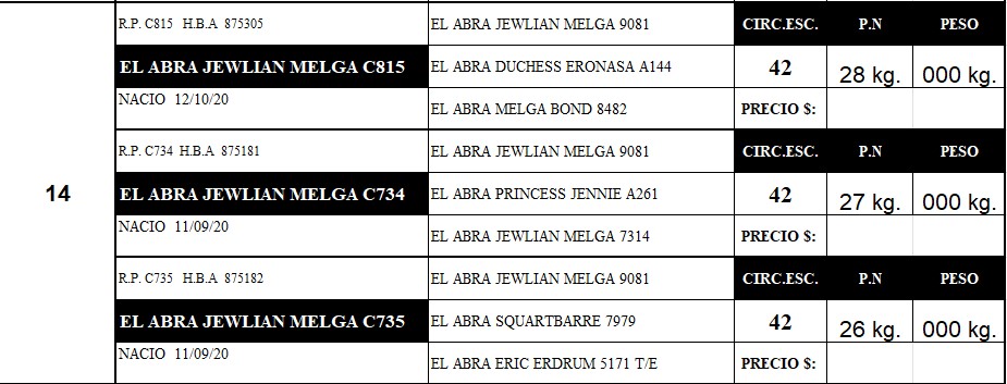 LOTE 14, TOROS PUROS DE PEDIGREE Lote Anterior Volver al remate Lote Siguiente Información del Lote Animales del Lote Pedigree Ofertar Contacto Buenos Aires - Daireaux - Buenos Aires Información del Lote Identificador: #172775 Cantidad 3 Categoría Toros PP Departamento Buenos Aires Ubicación Daireaux - Buenos Aires Buenos Aires - Daireaux - Buenos Aires Ofertar **LA PRE OFERTA ES POR UN ANIMAL Fecha de cierre: 07 de Septiembre a las 20:00hs. Aún no tiene ofertas Animales: (1)-C815 (2)-C734 (3)-C735 Plazo: Contado 30 días 45 días 60 días 90 días 120 días 180 días Contado, 30 y 60 dias Su Oferta en $: − + Step: -0,01 / +0,01 Programar puja hasta: Programar puja hasta Aumentar puja programada 800000.02 800000.2 ** Iniciar sesión para ofertar Ofertar Ofertas Recibidas $ Fecha/Hora Estado Este lote aún no tiene preofertas. 197 Visualizaciones ClicData Animales del Lote RP (1)-C815 (2)-C734 (3)-C735 PRECIO BASE 0.00 0.00 0.00 RP (1)-C815 PRECIO BASE 0.00 RP (2)-C734 PRECIO BASE 0.00 RP (3)-C735 PRECIO BASE 0.00 Pedigree Contacto Empresa: MONASTERIO TATTERSALL S.A. Nombre*: E-mail* : Mensaje Enviar Registrese gratis Este contenido Exclusivo está disponible sólo para usuarios registrados Ingresar