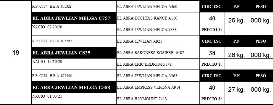 LOTE 19, TOROS PUROS DE PEDIGREE Lote Anterior Volver al remate Lote Siguiente Información del Lote Animales del Lote Pedigree Ofertar Contacto Buenos Aires - Daireaux - Buenos Aires Información del Lote Identificador: #172780 Cantidad 3 Categoría Toros PP Departamento Buenos Aires Ubicación Daireaux - Buenos Aires Buenos Aires - Daireaux - Buenos Aires Ofertar **LA PRE OFERTA ES POR UN ANIMAL Fecha de cierre: 07 de Septiembre a las 20:00hs. Aún no tiene ofertas Animales: (1)-C757 (2)-C825 (3)-C588 Plazo: Contado 30 días 45 días 60 días 90 días 120 días 180 días Contado, 30 y 60 dias Su Oferta en $: − + Step: -0,01 / +0,01 Programar puja hasta: Programar puja hasta Aumentar puja programada 800000.02 800000.2 ** Iniciar sesión para ofertar Ofertar Ofertas Recibidas $ Fecha/Hora Estado Este lote aún no tiene preofertas. 122 Visualizaciones ClicData Animales del Lote RP (1)-C757 (2)-C825 (3)-C588 PRECIO BASE 0.00 0.00 0.00 RP (1)-C757 PRECIO BASE 0.00 RP (2)-C825 PRECIO BASE 0.00 RP (3)-C588 PRECIO BASE 0.00 Pedigree Contacto Empresa: MONASTERIO TATTERSALL S.A. Nombre*: E-mail* : Mensaje Enviar Registrese gratis Este contenido Exclusivo está disponible sólo para usuarios registrados Ingresar