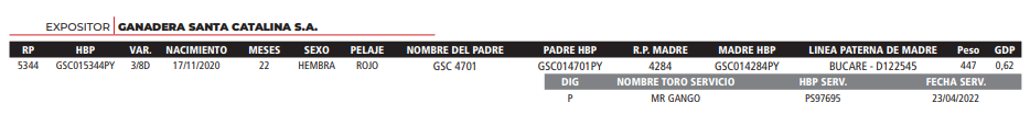 | Establecimiento | GANADERA SANTA CATALINA S.A. |