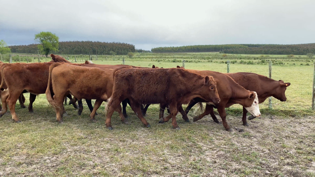 Buen lote de novillos Angus cruzas y Caretas. Fueron encerrados en la mañana e inspeccionados en la tarde. Son de buena clase y de gran potencial para una rápida invernada. Peso 78%: promedio 322 kg (359/295).